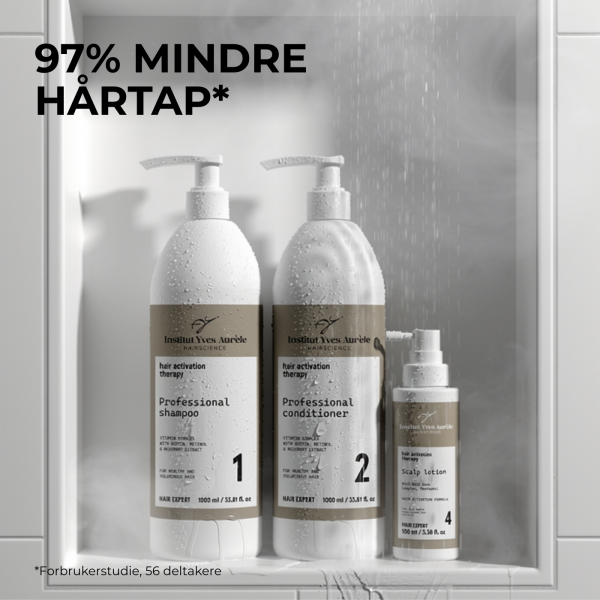 Det tok forskerne ved Institut Yves Aurèle 10 år å utvikle denne hårvekstaktiverende terapien. Dette tretrinnssystemet er utviklet for hår som trenger økt volum, gjenopprettet veksthastighet og redusert hårtap.
