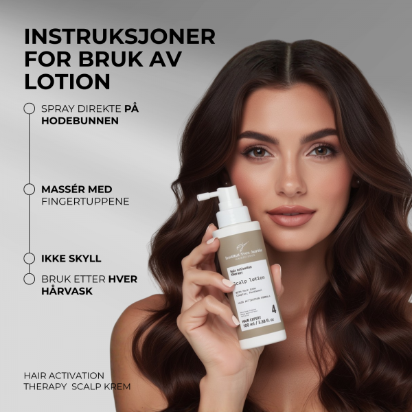 Lotion (100 ml): Etter hårvask, tørk håret med håndkle. Spray lotion på hodebunnen. Masser forsiktig inn produktet over hele hodebunnen med fingertuppene. Skal ikke skylles ut.